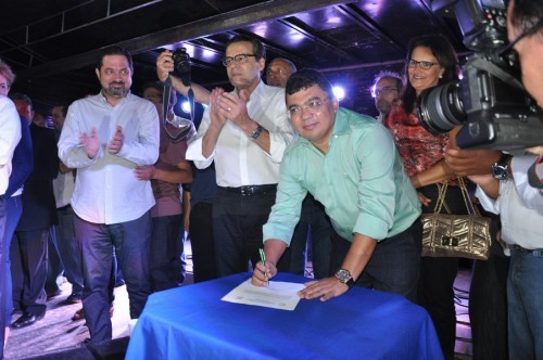 Prefeito Keginaldo no momento em que assinou a ordem de serviço para inicio da construção da UPA