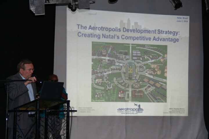 A Prefeitura de São Gonçalo do Amarante realizou na manhã desta segunda-feira (2) palestra com o norte-americano John Kasarda, PHD em Aerotrópole, falando sobre o modelo de aeroporto cidade. O evento contou com a parceria do Sebrae e Sistema Fiern, e apoio da UFRN, UniRN e Inframerica. O Teatro recebeu ainda as palestrantes de Ibernon Martins, engenheiro e diretor regional do Consórcio Inframerica e Danilo Colares, superintendente do Governo de Minas Gerais.