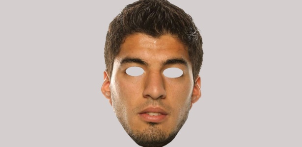 A máscara de Suárez apareceu na noite de quinta-feira, no aeroporto de Montevidéu, onde centenas de uruguaios foram receber o jogador, suspenso por nove partidas da seleção e banido do futebol por quatro meses.