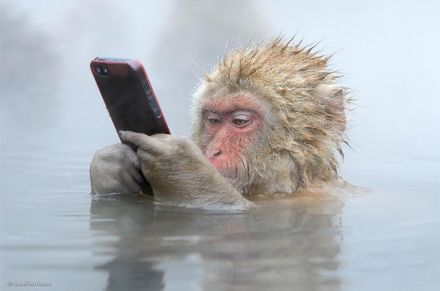 A fotografia de um macaco da neve segurando um iPhone é um dos concorrentes de um dos prêmios mais importantes de fotografia de vida selvagem no mundo, que chega a sua 50ª edição.