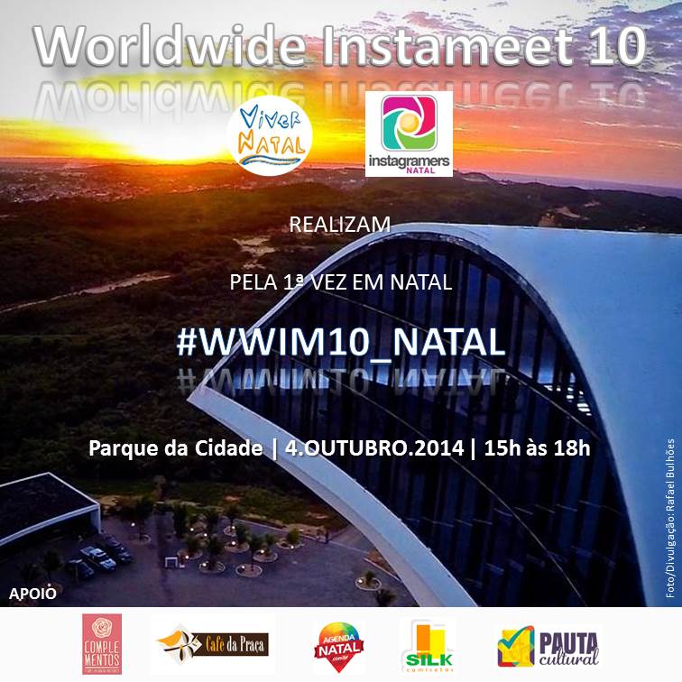 Depois do sucesso do 1º Instameet Natal no Parque das Dunas, no último dia 14 de setembro, os administradores dos perfis no Instagram @ViverNatal e @IGersNatal realizarão, pela primeira vez na capital potiguar, o “WORLDWIDE INSTAMEET 10”, ou simplesmente, “#WWIM10”, isto é, o 10º Encontro Mundial dos Usuários do Instagram em Natal.