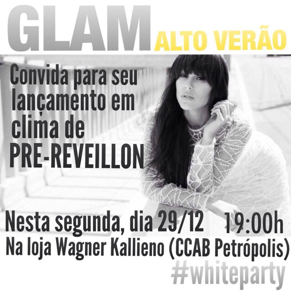 Na próxima segunda-feira 29/12, o estilista Wagner Kallieno abre as portas de sua loja, no CCAB Petrópolis, para o lançamento de mais uma edição da revista Glam. Todos de branco! Assim pede a organização da festa que terá como tema um pré-réveillon. O convite já circula pela cidade. Aplausos para os dois talentosos Waganer Kallieno e George Azevedo!