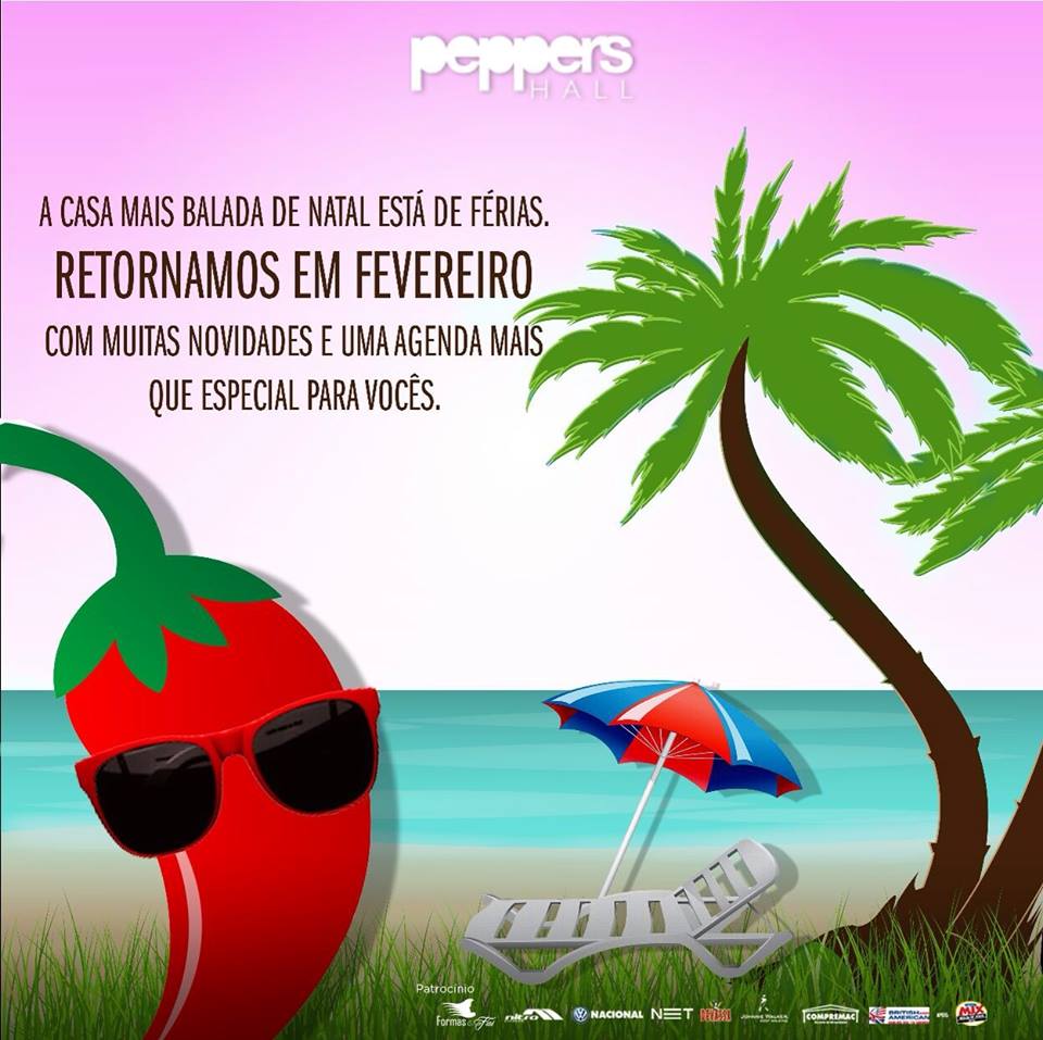 Depois de um 2014 incrível, a Pepper´s Hall dá uma pausa na sua programação e sai de férias neste mês de janeiro. A turma vai reenergizar as forças e já avisa: a casa mais balada de Natal volta em fevereiro com muito mais música, festa, diversão, e claro, muitas novidades que vão surpreender.