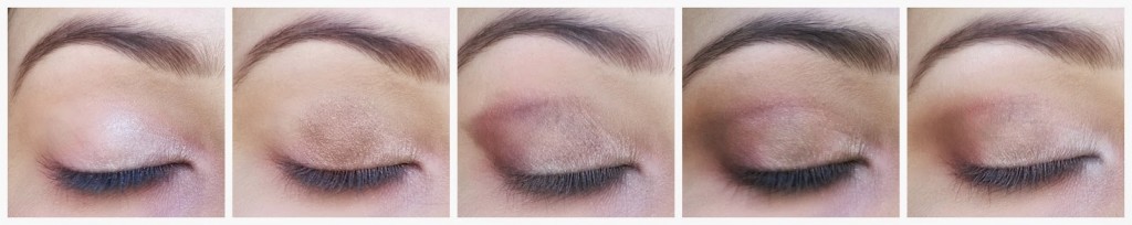 1º passo: Aplique uma sombra creme, bem clarinha, somente no lado interno da pálpebra móvel.