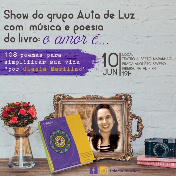 A jornalista Glácia Marillac lança hoje (10) seu primeiro livro, O Amor é … – 108 poemas para simplificar a vida. A noite de autógrafos será a partir das 19h, no Teatro Alberto Maranhão, e contará com apresentações de músicas e poesias sobre o amor do Grupo Auta de Luz que fará
