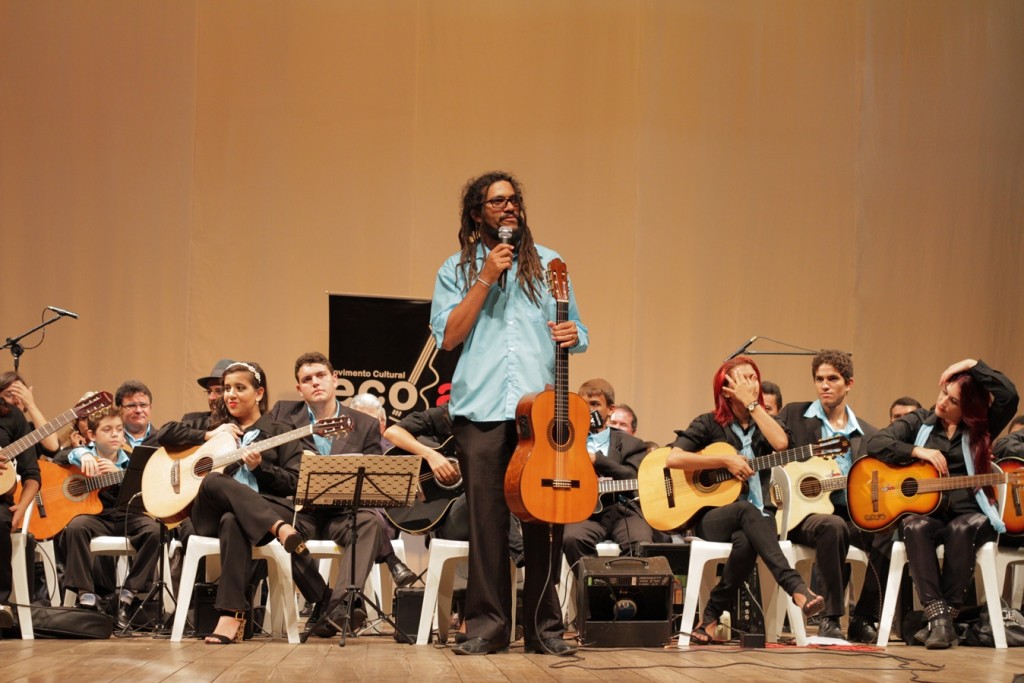 Com sete anos de atividades, o projeto oferece aulas gratuitas de violão em praça pública.