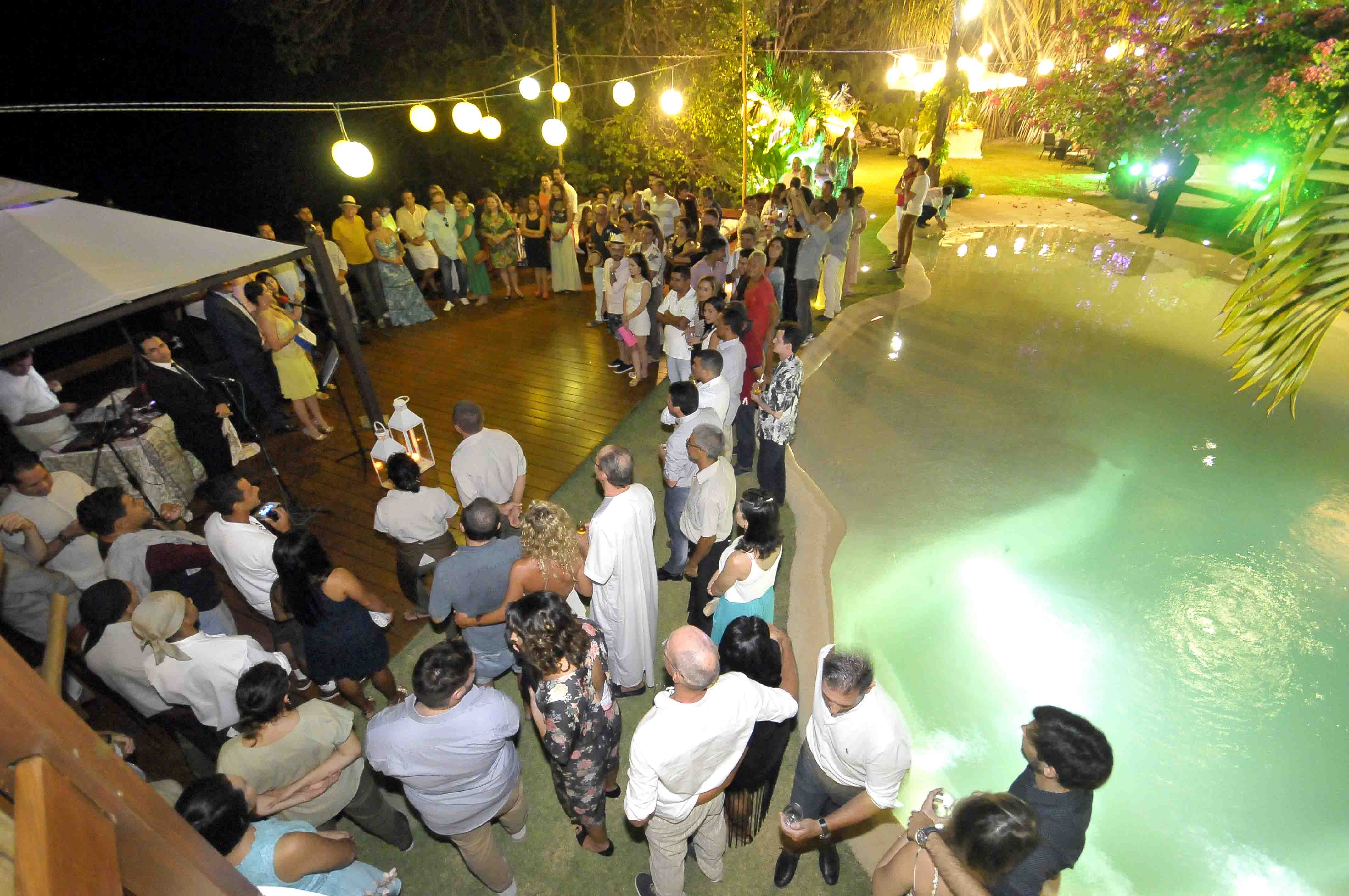 O coquetel de inauguração teve também a preocupação de fazer com que seus convidados, além de conhecer o empreendimento inaugurado, pudesse interagir e sentir toda a atmosfera do local. Então, o hotel foi preparado e organizado em sua a área externa ao redor da piscina, de forma que seus convidados circulassem pelo ambiente e interagissem também com os demais convidados.