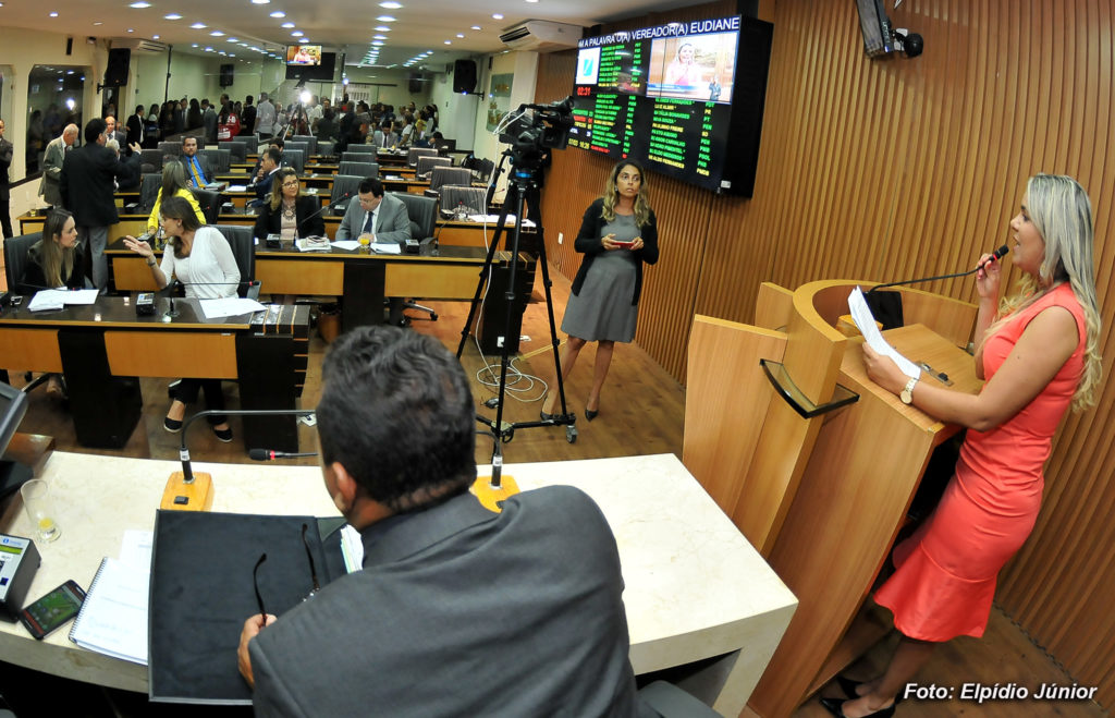 Vereadora Eudiane Macedo durante sessão da Câmara Municipal Natal que criou a Frente Parlamentar em Defesa das Mulheres. Foto: Elpídio Júnior