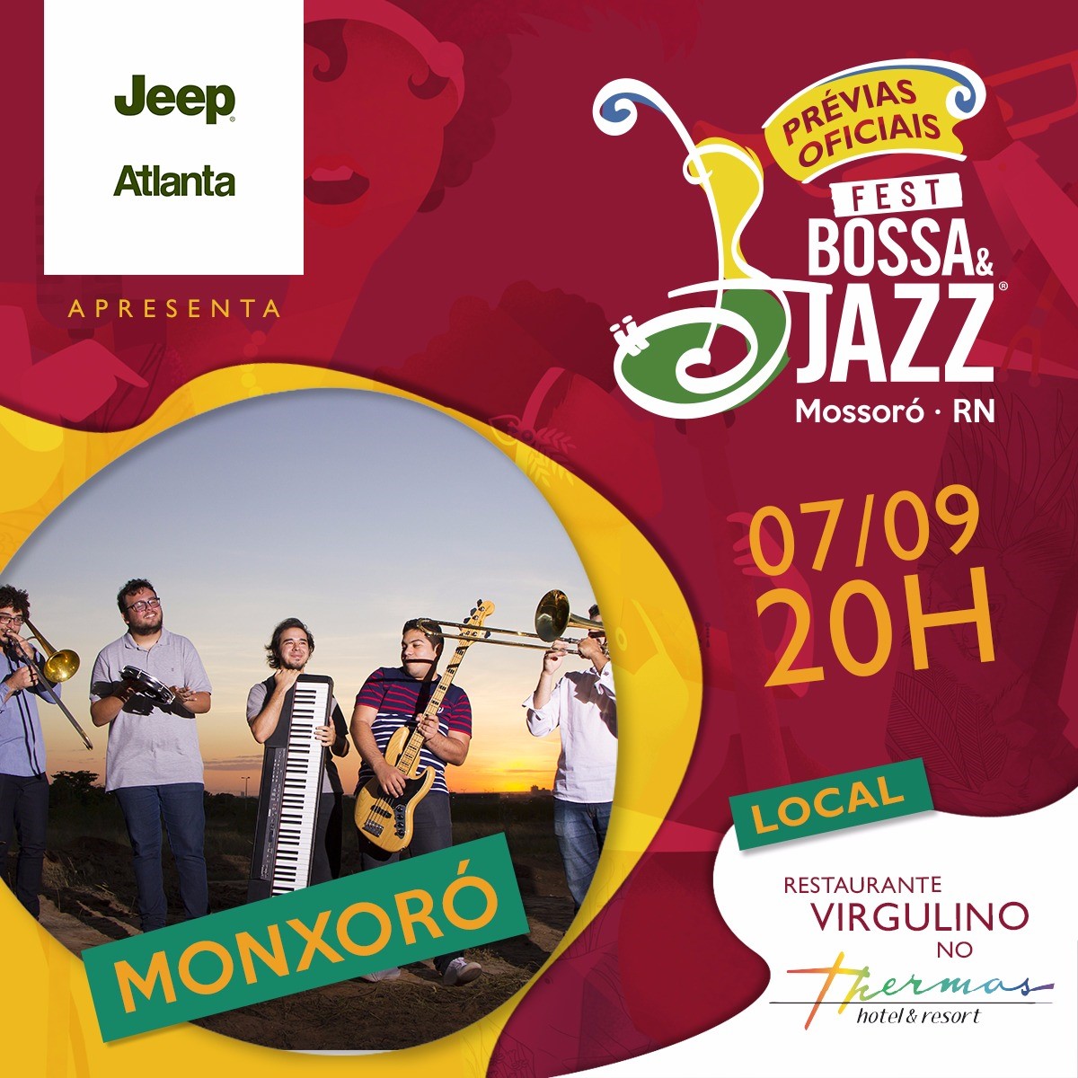 Nesta quinta-feira, dia 07 de setembro, feriado nacional, o Fest Bossa & Jazz e a Jeep Atlanta tem uma ótima dica para você curtir este dia com cara de feriadão. Mais uma Prévia Fest Bossa & Jazz 2017, desta vez com o Grupo Monxoró, no Restaurante Virgulino do Thermas Hotel e Resort, a partir das 20h.