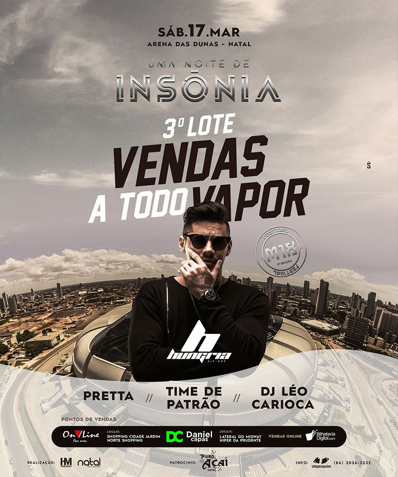 Dia 17 de Março, tem Hungria Hip Hop OFICIAL, Banda Pretta, Time de Patrão – TP084 e DJ Léo Carioca no Arena das Dunas!!!Valores no último lote: