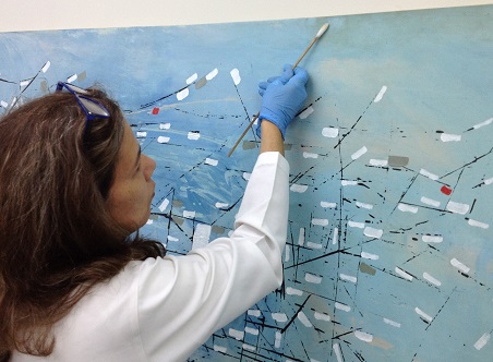 Muito fino, o tecido da tela possuía uma série de rasgos nas bordas. No processo de restauro, o painel ganhou reforço de um tecido sintético, colado em seu verso, mantendo a transparência da assinatura do artista. O chassi de madeira foi substituído por um de alumínio, mais resistente.