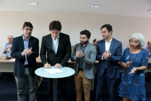 Também foi assinada a adesão ao 2° ciclo do Programa de Estímulo à Gestão de Recursos Hídricos (Progestão). A ação é desenvolvida pela Agência Nacional de Águas (ANA), de incentivo financeiro aos sistemas estaduais, para aplicação exclusiva em iniciativas de fortalecimento institucional e de gerenciamento de recursos hídricos, mediante o alcance de metas.