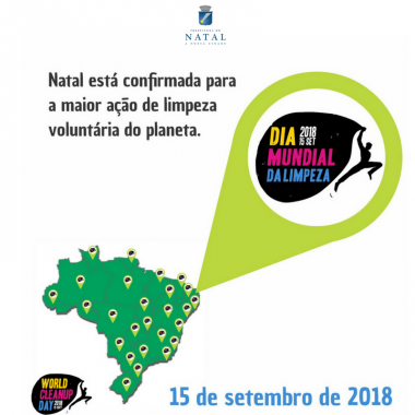Natal participará da ação denominada Dia Mundial da Limpeza com coleta de lixo em toda a orla do Município. A ação, que acontecerá no dia 15 de setembro, consiste em limpar um local com grande participação voluntária, visando a conscientização sobre o meio ambiente e sobre a gestão compartilhada do lixo, envolvendo o Município, empresas e a população. A Prefeitura do Natal apoia esta campanha com a integração da Urbana, da Secretaria Municipal de Mobilidade Urbana (STTU) e Secretaria Municipal de Comunicação, entre outras.