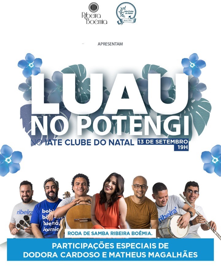 O projeto Ribeira Boêmia e o Iate Clube do Natal realizam nesta sexta-feira, dia 13, o “Luau no Potengi”, que terá como atração música de boa qualidade, a cargo da Roda de Samba Ribeira Boêmia e de convidados especiais como Dodora Cardoso e Matheus Magalhães, do grupo “Samba Preto do Branco”. O evento, que será aberto por um trio de Chorinho, terá início às 19 horas.