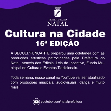 Está no ar a 15ª edição do Cultura na Cidade no Youtube da Prefeitura do Natal