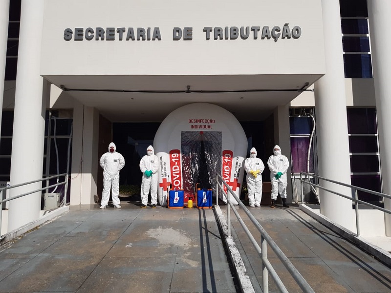 Equipes da Cruz Vermelha Brasileira iniciaram os trabalhos de desinfecção dos prédios situados no Centro Administrativo do Rio Grande do Norte. O processo de sanitização, demandado pela Secretaria de Estado da Segurança Pública e da Defesa Social (Sesed), começou nesta segunda-feira (17) pelas instalações da Secretaria Estadual de Tributação (SET-RN) com a aplicação de produtos para eliminar a presença do novo coronavírus (Covid-19) nos ambientes da pasta. Todo o trabalho foi acompanhado pelos servidores Marconi Brasil e Cláudio Gurgel, que integram a comissão interna responsável por implantar e assegurar protocolos de segurança e higiene antes da volta dos servidores, programada para o dia 31 deste mês.