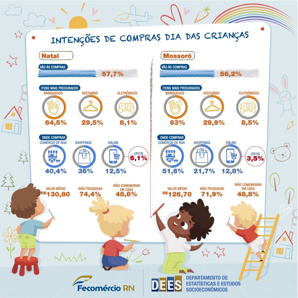 Com o cenário da pandemia, a forma de comemorar o Dia das Crianças passará por alterações. Os passeios com as crianças dão lugar as comemorações em casa, escolhida por 48,8% dos natalenses e mossoroenses.