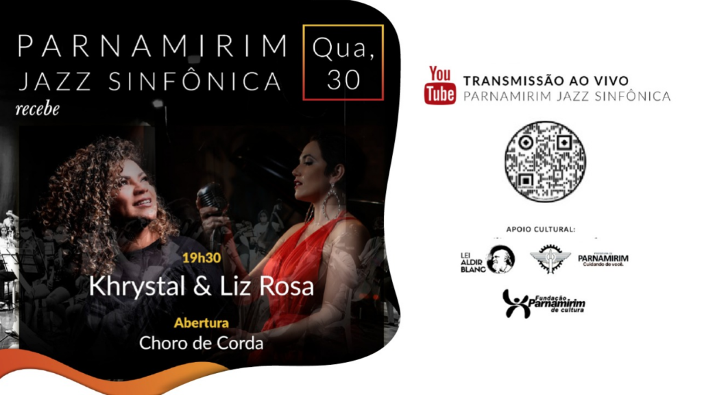 A Fundação Parnamirim de Cultura (Funpac) vai encerrar a programação de fim ano nesta quarta-feira (30) com a live comemorativa que contará com apresentações do Choro de Cordas, Parnamirim Jazz Sinfônica (PJS) e convidados. O evento será transmitido do Teatro Municipal de Parnamirim a partir das 19h30 e terá participação especial de Liz Rosa, Khrystal e Jailton Pereira.