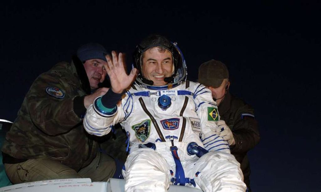 Há 15 anos, ele embarcou na nave russa Soyuz TMA-8, após o descumprimento contratual do governo brasileiro com a Nasa, rumo ao espaço. Pontes ficou uma temporada na Estação Espacial Internacional realizando experimentos científicos. Atualmente, Marcos Pontes ocupa a cadeira do Ministério da Ciência e Tecnologia e Inovação.