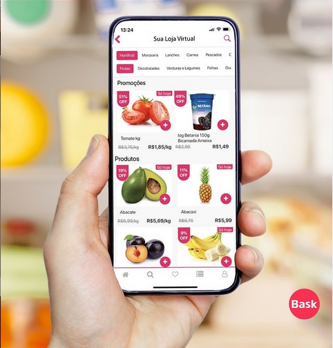 O aplicativo Bask foi criado em 2019 com o objetivo de promover o e-commece de supermercados, padarias, peixarias, produtores rurais e outros segmentos da alimentação. Em pouco mais de um ano, o app já conta com mais de 200 mil produtos, mais de 100 lojas cadastradas e alcançou a marca de 6 mil pedidos por mês.