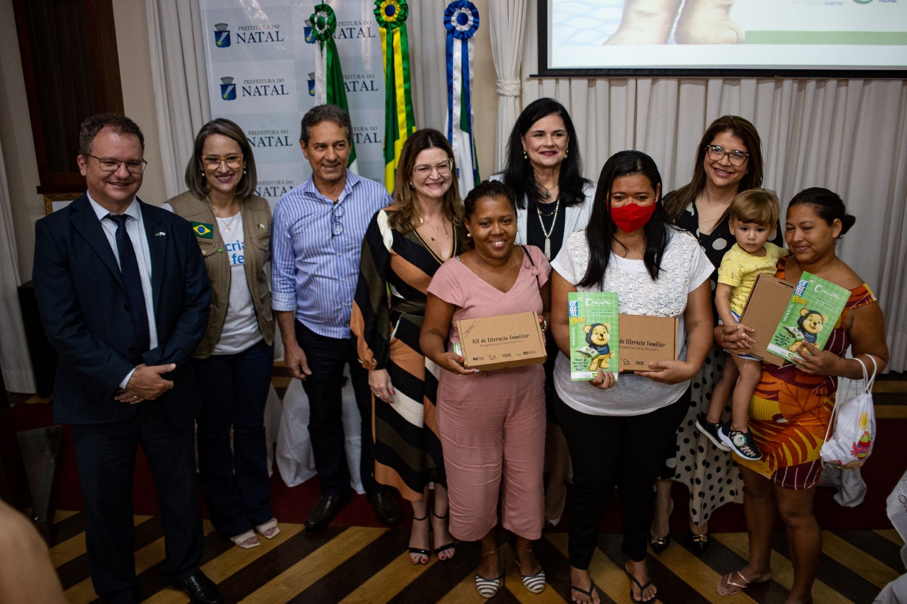 A Sessão solene para a entrega dos primeiros 1.095 kits aconteceu semana passada, no Palácio Felipe Camarão, e contou com a presença da secretária nacional de Atenção à Primeira Infância do Ministério da Cidadania, Luciana Siqueira e do secretário de Alfabetização do Ministério da Educação, Carlos Nadamim, além dos titulares das secretarias que atuam na execução do programa na capital, a Secretaria Municipal do Trabalho e Assistência Social (Semtas), Ana Valda Galvão, e a Secretaria de Educação, Cristina Diniz. Capacitadores de leitura e algumas famílias assistidas pelo programa também estavam presentes. A deputada federal Carla Dickson, que integra a comissão da primeira infância no legislativo federal, também participou da solenidade.