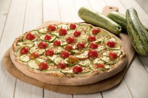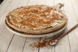 Pizza de carne seca: carne seca, cebola, pimenta biquinho e cream cheese.