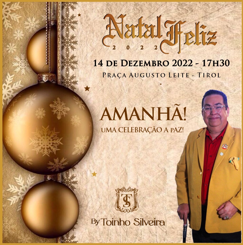 O Natal Feliz de Toinho Silveira é mais que uma festa, é uma celebração à solidariedade, amanhã mais uma vez a Praça Augusto Leite, no Bairro do Tirol, se transformará num ambiente de Paz e Luz. Desde já, em nome da equipe de Toinho Silveira realizador e idealizador deste evento, gostaríamos de agradecer a todos os patronos e patronesses que a cada ano, sem medir esforços, nos ajudam a manter esse sonho. Feliz Natal a todos e a esperança de um novo ano cheio de realizações.