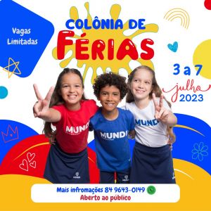 As vagas são limitadas e abertas ao público em geral. Para obter mais informações sobre as atividades, inscrições e valores, basta entrar em contato através do WhatsApp no número 84 9.9643-0149, ou diretamente na tesouraria da escola. A equipe do Mundi está pronta para esclarecer as dúvidas e ajudar a proporcionar um momento especial para as crianças.