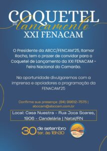 FENACAM 2025 será lançada no próximo dia 30 de setembro em Natal com foco no protagonismo do camarão cultivado no Brasil e, as perspectivas do retorno ao mercado internacional.