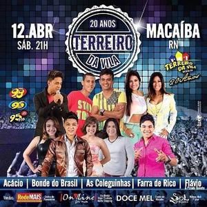 vem aí o 20 aniversário do terreiro da vila em Macaiba, acontecerá no dia 12/04/2014, á partir das 22:00hrs,no Parque Otaviano Pessoa – Terreiro da Vila EM MACAIBA . com diversas trações como:Acácio, Bonde do Brasil, Simone & Simaria (As Coleguinhas), Farra de Rico e Flávio & Pisada Quente.