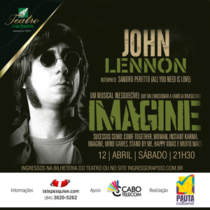 Pela primeira vez em Natal, o “Tributo Imagine – John Lennon”, uma das maiores homenagens ao ex-Beatle, será apresentado dia 12 de abril no Teatro Riachuelo. Interpretado por Sandro Peretto, integrante do grupo All You Nedd Is Love, o show leva o nome de um dos maiores sucessos de Lennon ‘Imagine’, na época, considerado hino da paz mundial.