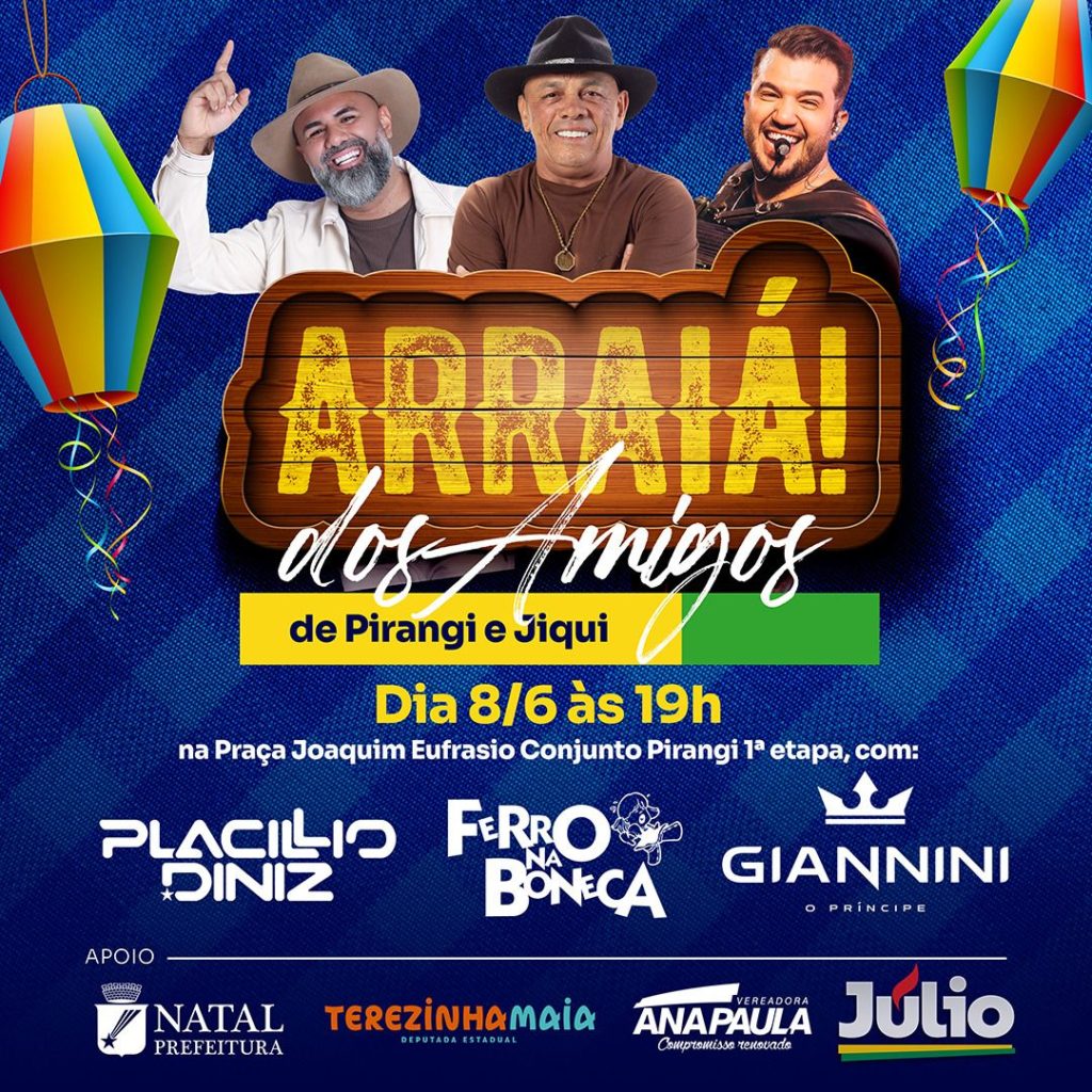 Preparem as camisas quadriculadas e as botas de caubói, porque o tão esperado Arraiá dos Amigos de Pirangi e Jiqui está chegando! Marcado para o dia 8 de junho, a partir das 19h, na Praça Joaquim Eufrásio, o evento promete uma noite de muita animação e tradição junina.