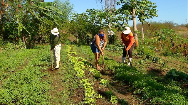 “Todos os dias a gente vem pra cá, limpa, é bem diversificado. de manhã e tarde a gente vem, colhe, faz a horta”, conta Sandra.